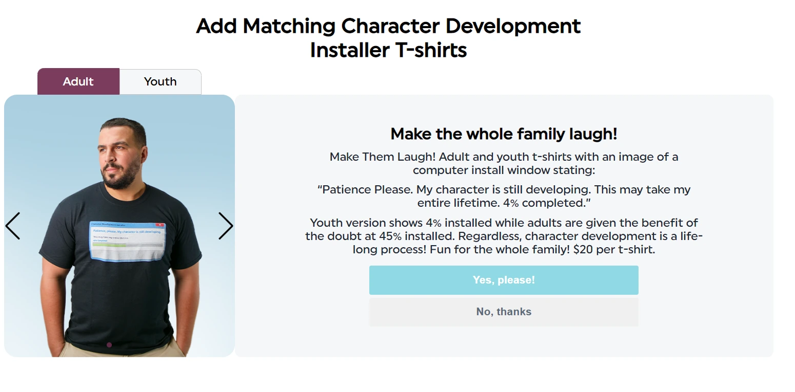At the end of the form, depending on the options selected, a specific upsell product will be displayed for the user to choose whether or not to add it to their cart or not.