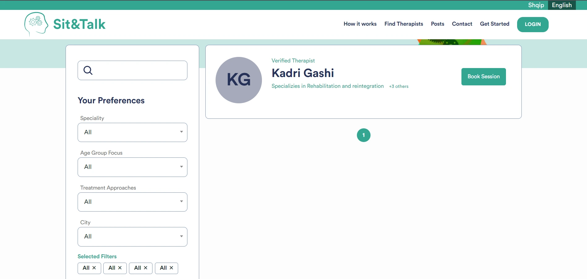 A filtering system that is used to find an adequate therapist for your needs.